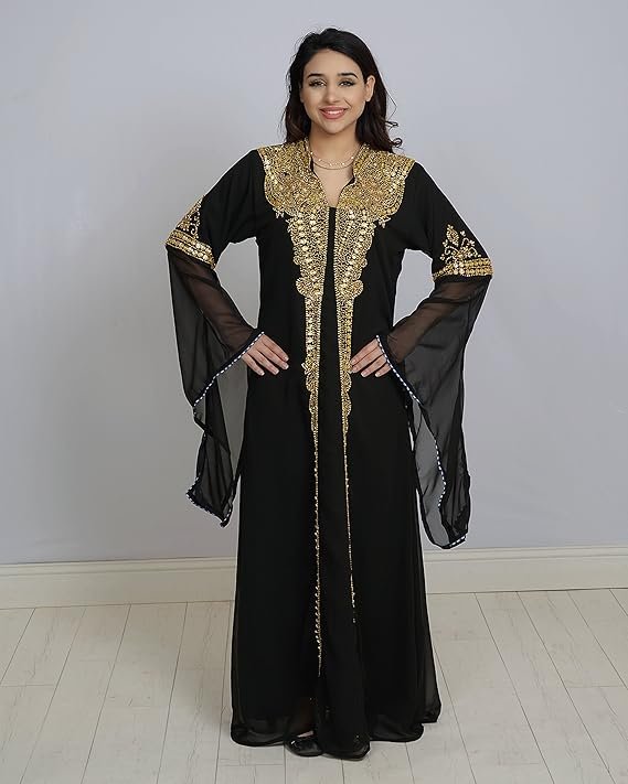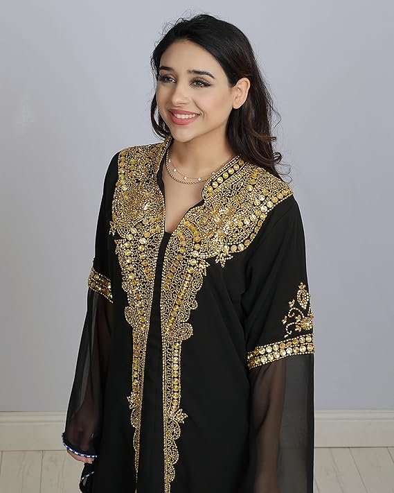 • This gorgeous Dubai Kaftan dress for women features intricate crystal beads